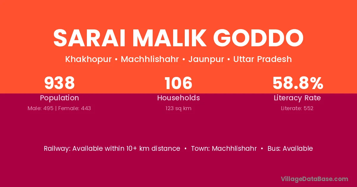 Machhlishahr is the nearest town to Sarai Malik Goddo village for major economic activities