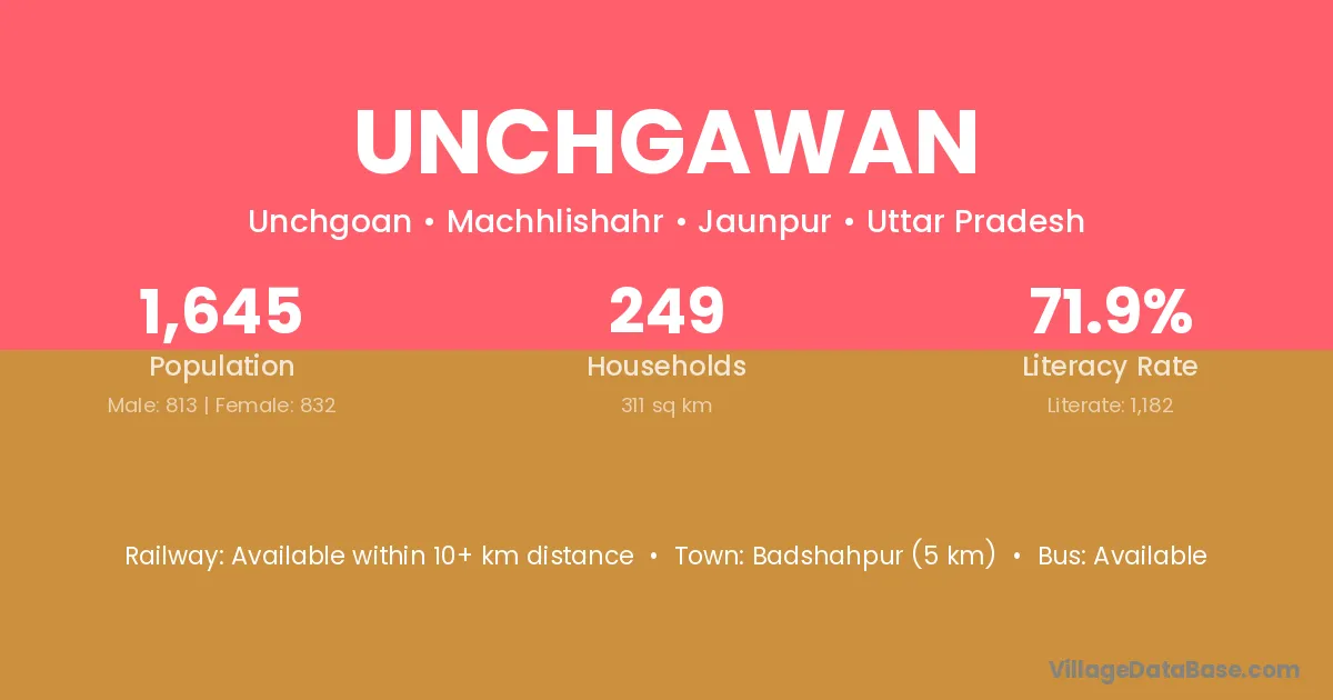 Badshahpur (5 km) is the nearest town to Unchgawan village for major economic activities and is located approximately 5 km away.