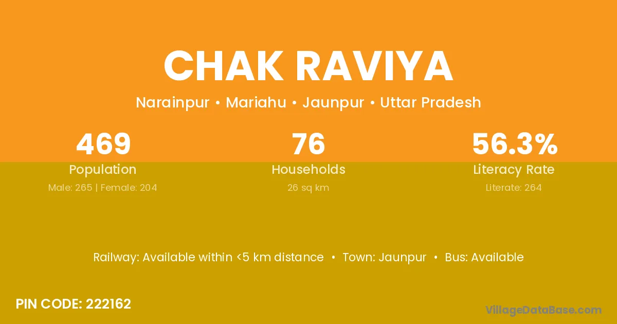 Jaunpur is the nearest town to Chak Raviya village for major economic activities