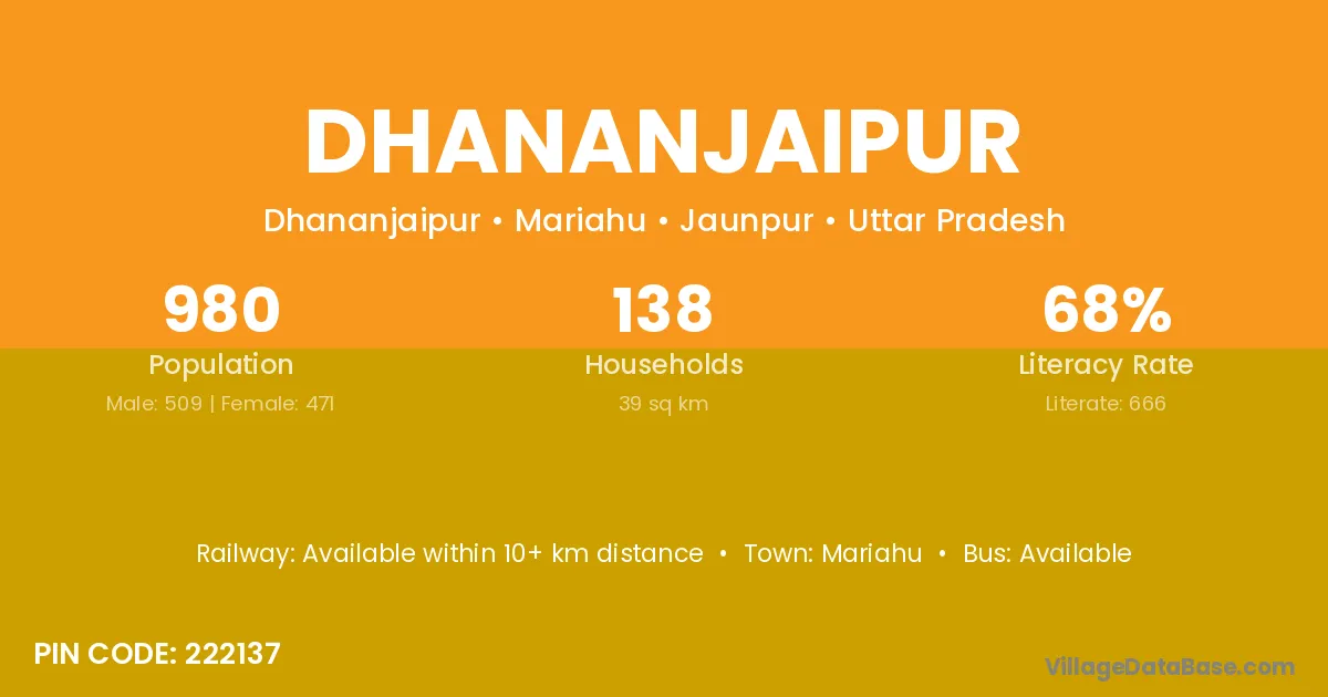 According to Census 2011 information, the village code of Dhananjaipur village is 222137.