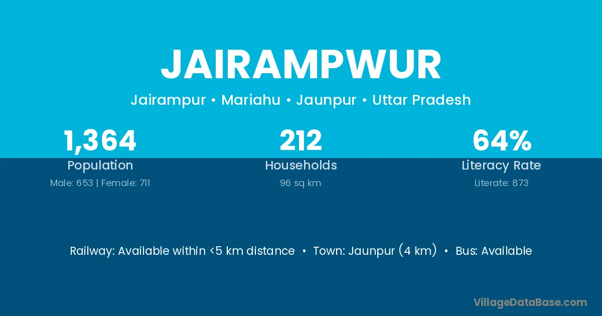 Jaunpur (4 km) is the nearest town to Jairampwur village for major economic activities and is located approximately 4 km away.