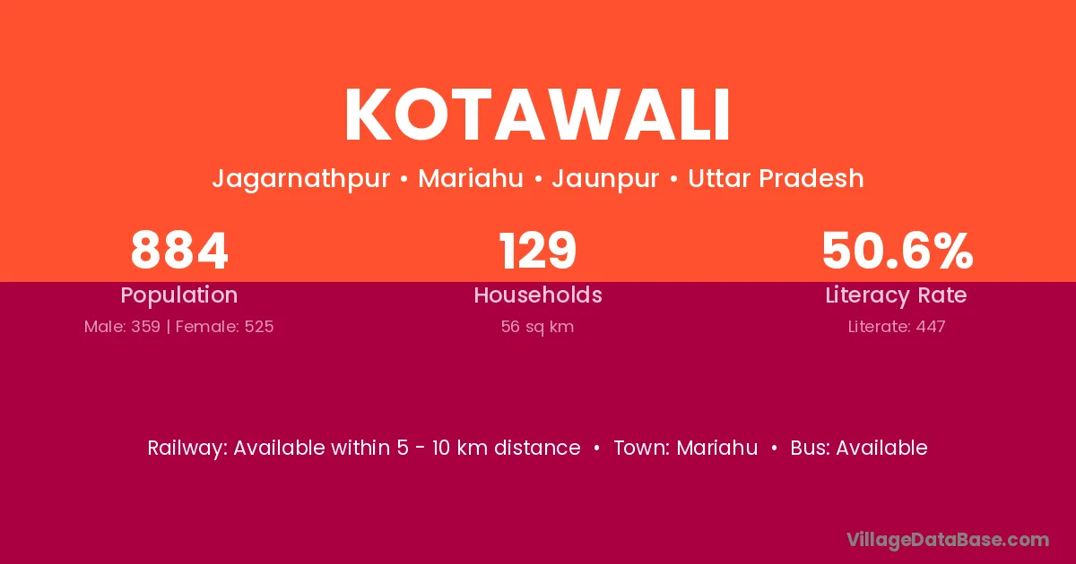 Kotawali village has a total population of 884 people, of which 359 are males and 525 are females.