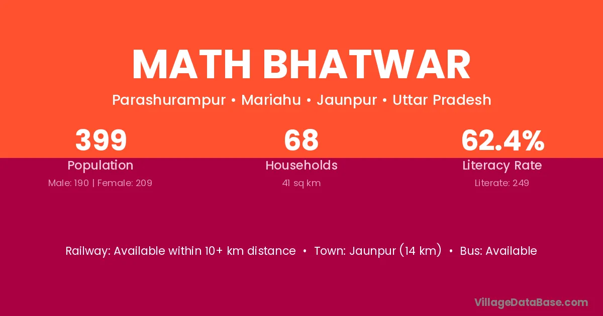 Jaunpur (14 km) is the nearest town to Math Bhatwar village for major economic activities and is located approximately 14 km away.