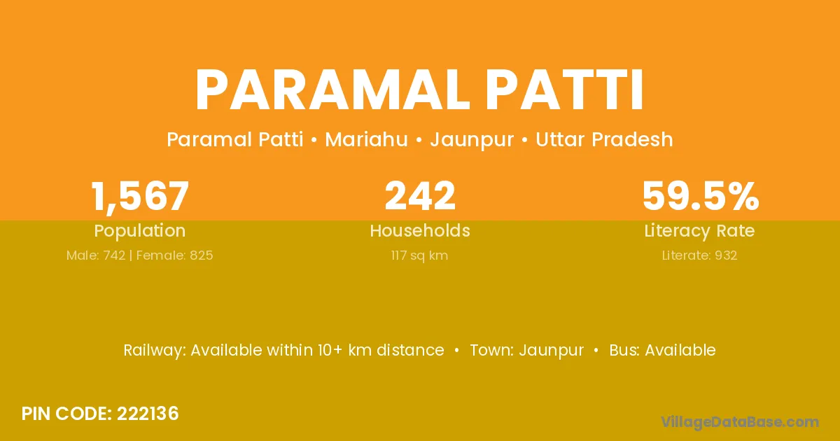 Jaunpur is the nearest town to Paramal Patti village for major economic activities