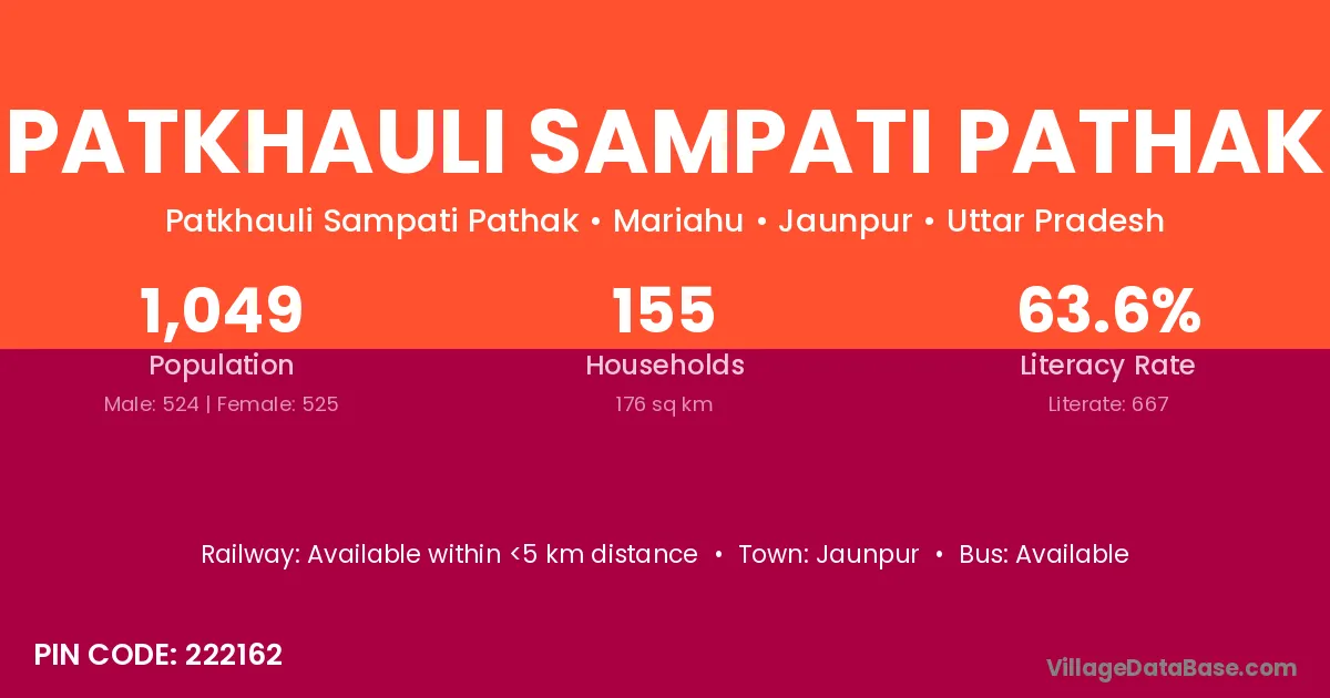 Patkhauli Sampati Pathak village has a total population of 1,049 people, of which 524 are males and 525 are females.