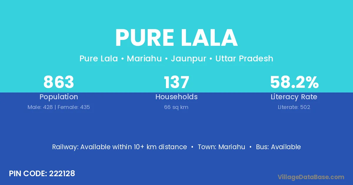 Pure Lala village has a total population of 863 people, of which 428 are males and 435 are females.