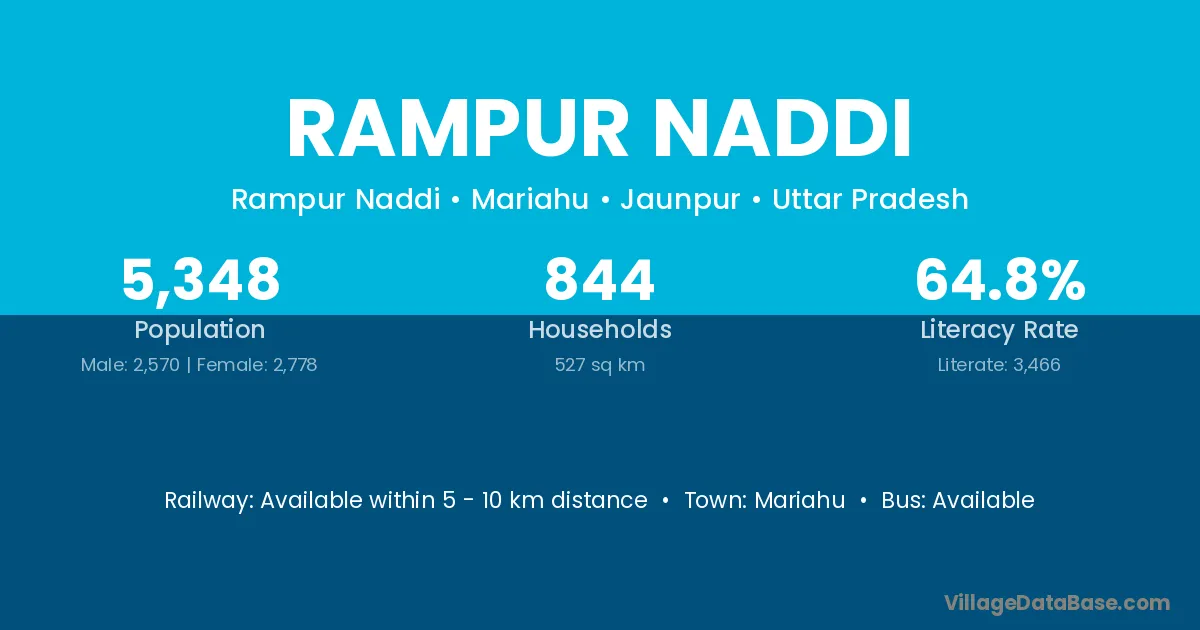 Mariahu is the nearest town to Rampur Naddi village for major economic activities