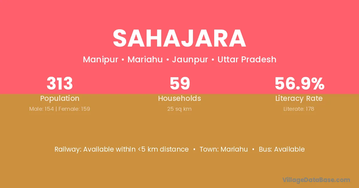 Sahajara village has a total population of 313 people, of which 154 are males and 159 are females.