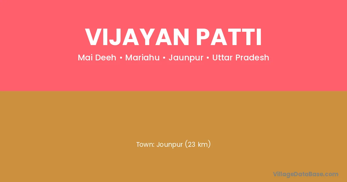 Jounpur (23 km) is the nearest town to Vijayan Patti village for major economic activities and is located approximately 23 km away.
