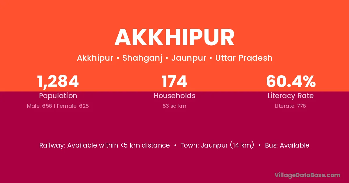 Jaunpur (14 km) is the nearest town to Akkhipur village for major economic activities and is located approximately 14 km away.