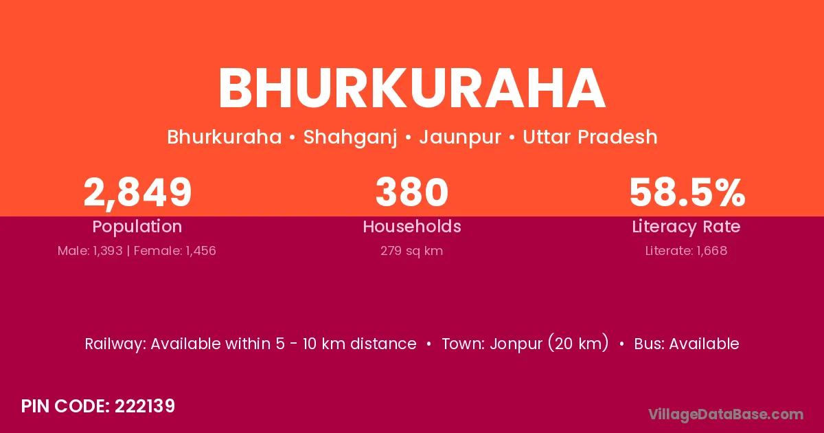 Bhurkuraha village has a total population of 2,849 people, of which 1,393 are males and 1,456 are females.