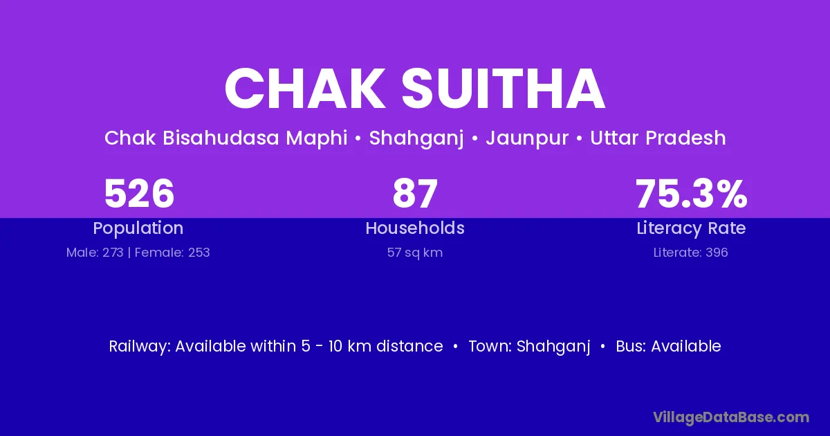 Chak Suitha village has a total population of 526 people, of which 273 are males and 253 are females.