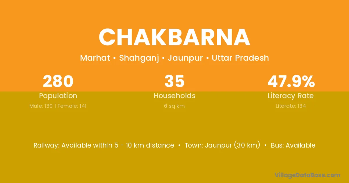 Jaunpur (30 km) is the nearest town to Chakbarna village for major economic activities and is located approximately 30 km away.
