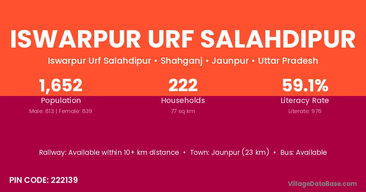 Iswarpur Urf Salahdipur village has a total population of 1,652 people, of which 813 are males and 839 are females.