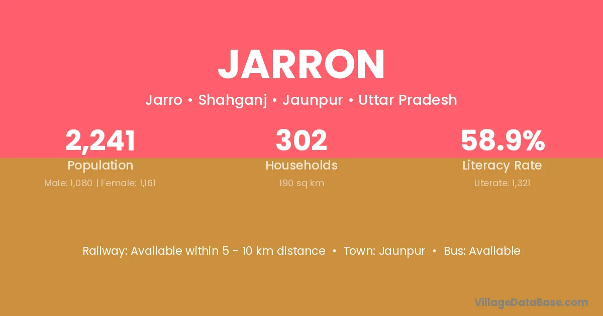 Jaunpur is the nearest town to Jarron village for major economic activities