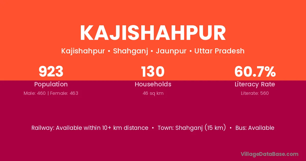 Shahganj (15 km) is the nearest town to Kajishahpur village for major economic activities and is located approximately 15 km away.