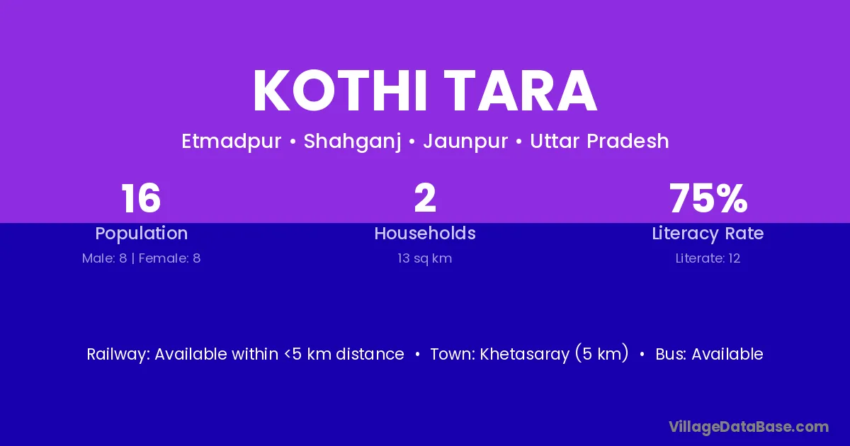 Khetasaray (5 km) is the nearest town to Kothi Tara village for major economic activities and is located approximately 5 km away.