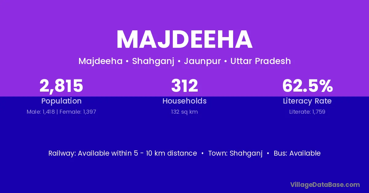 Shahganj is the nearest town to Majdeeha village for major economic activities