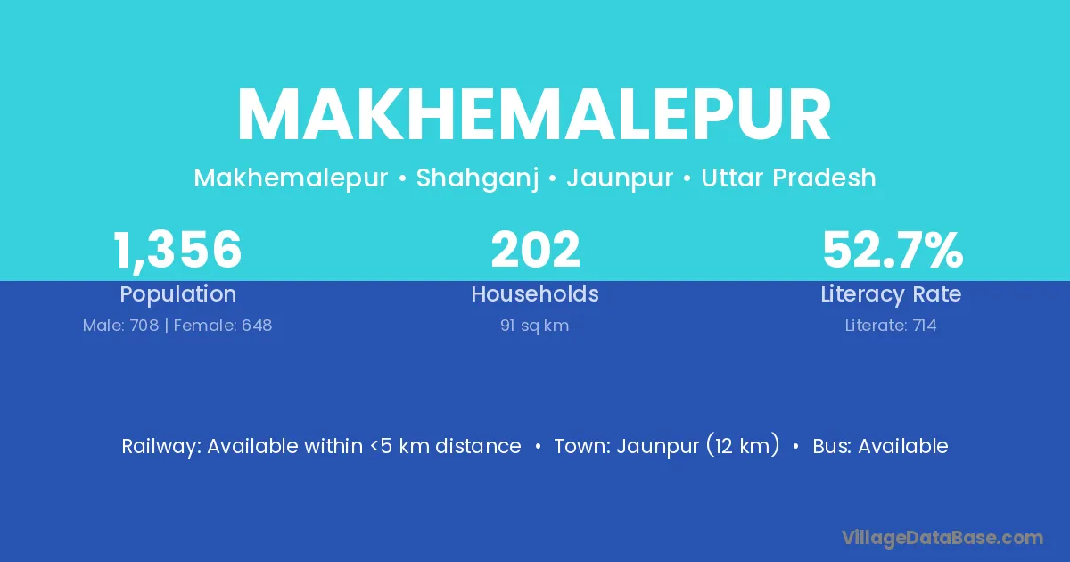 Jaunpur (12 km) is the nearest town to Makhemalepur village for major economic activities and is located approximately 12 km away.