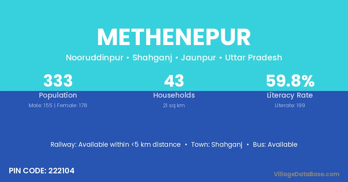 Shahganj is the nearest town to Methenepur village for major economic activities
