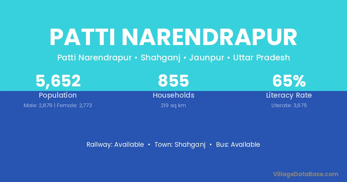 Shahganj is the nearest town to Patti Narendrapur village for major economic activities