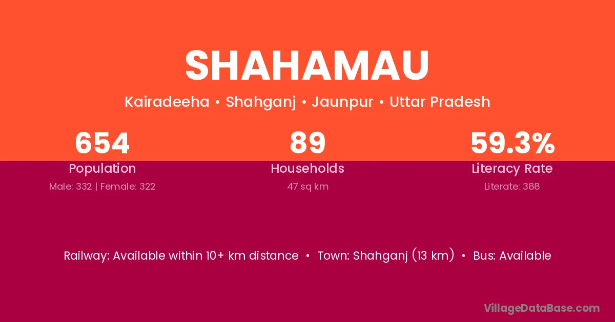 Shahganj (13 km) is the nearest town to Shahamau village for major economic activities and is located approximately 13 km away.