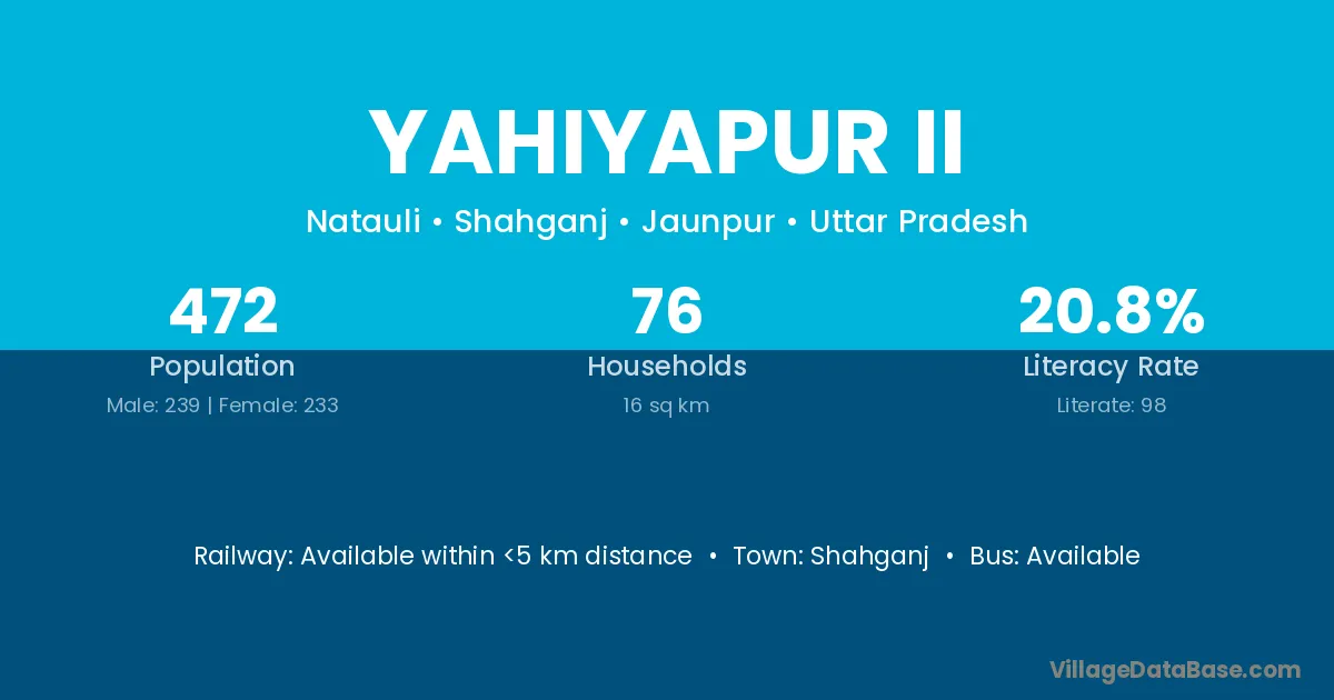 Yahiyapur Ii village has a total population of 472 people, of which 239 are males and 233 are females.