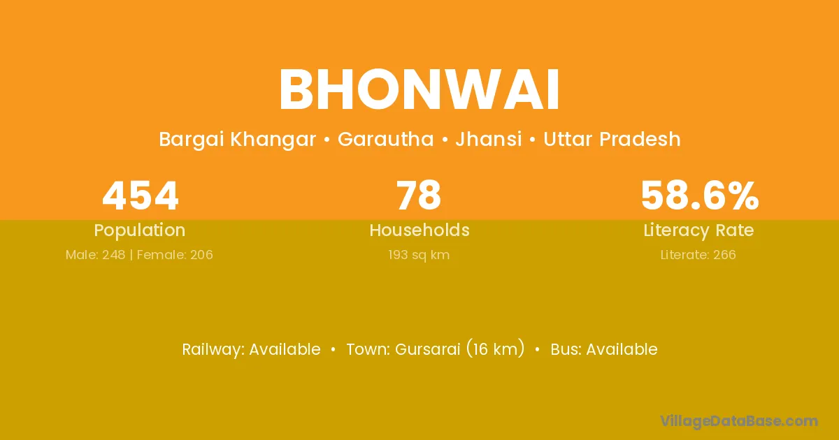 Bhonwai village has a total population of 454 people, of which 248 are males and 206 are females.