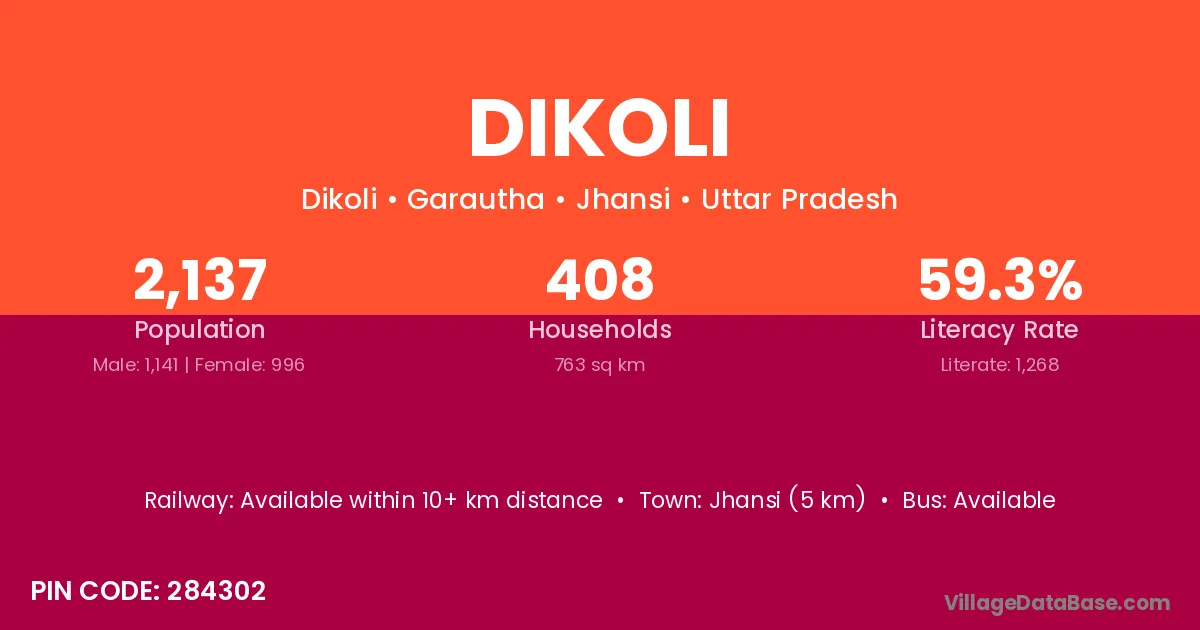 Jhansi (5 km) is the nearest town to Dikoli village for major economic activities and is located approximately 5 km away.