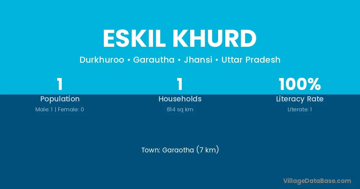 The literacy rate of Eskil Khurd village is 100.00%. Male literacy stands at 100.00% and female literacy at 0%.