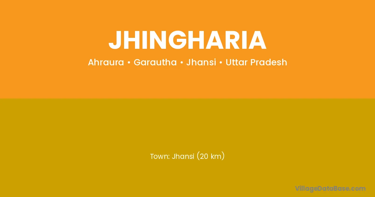 Jhansi (20 km) is the nearest town to Jhingharia village for major economic activities and is located approximately 20 km away.