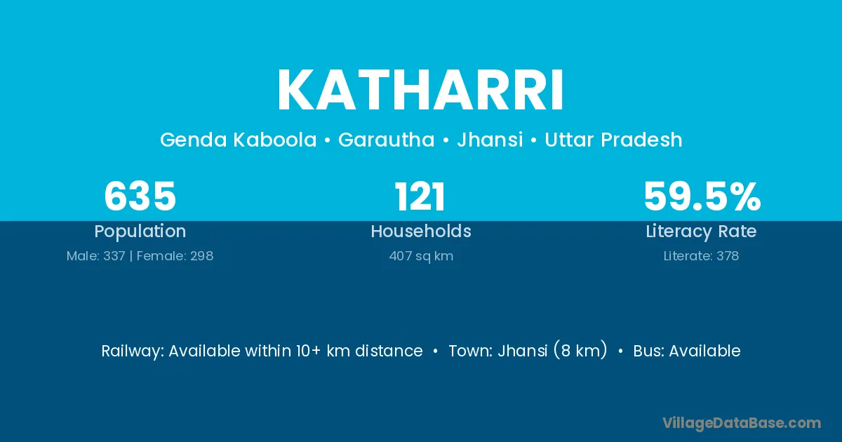 Jhansi (8 km) is the nearest town to Katharri village for major economic activities and is located approximately 8 km away.