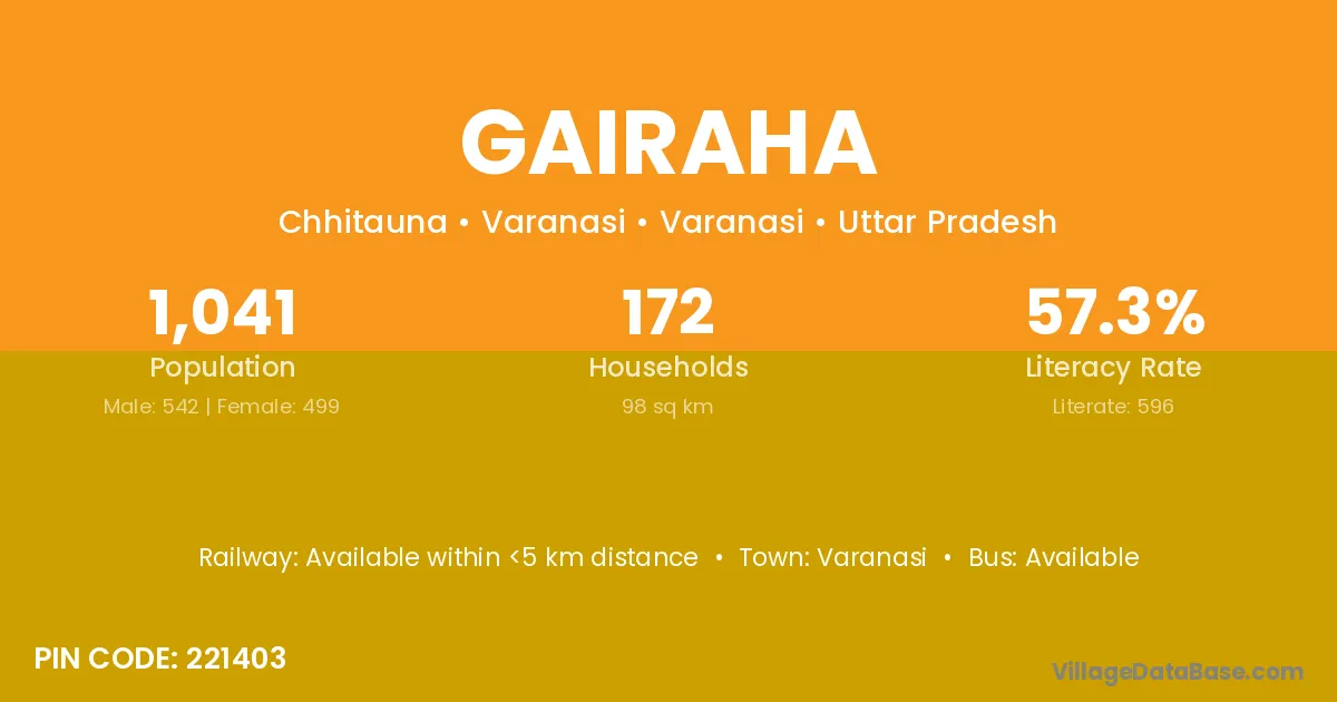 Gairaha village has a total population of 1,062 people, of which 537 are males and 525 are females.