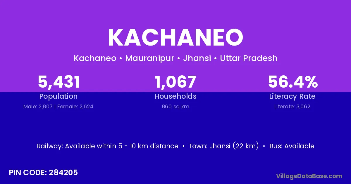 Jhansi (22 km) is the nearest town to Kachaneo village for major economic activities and is located approximately 22 km away.