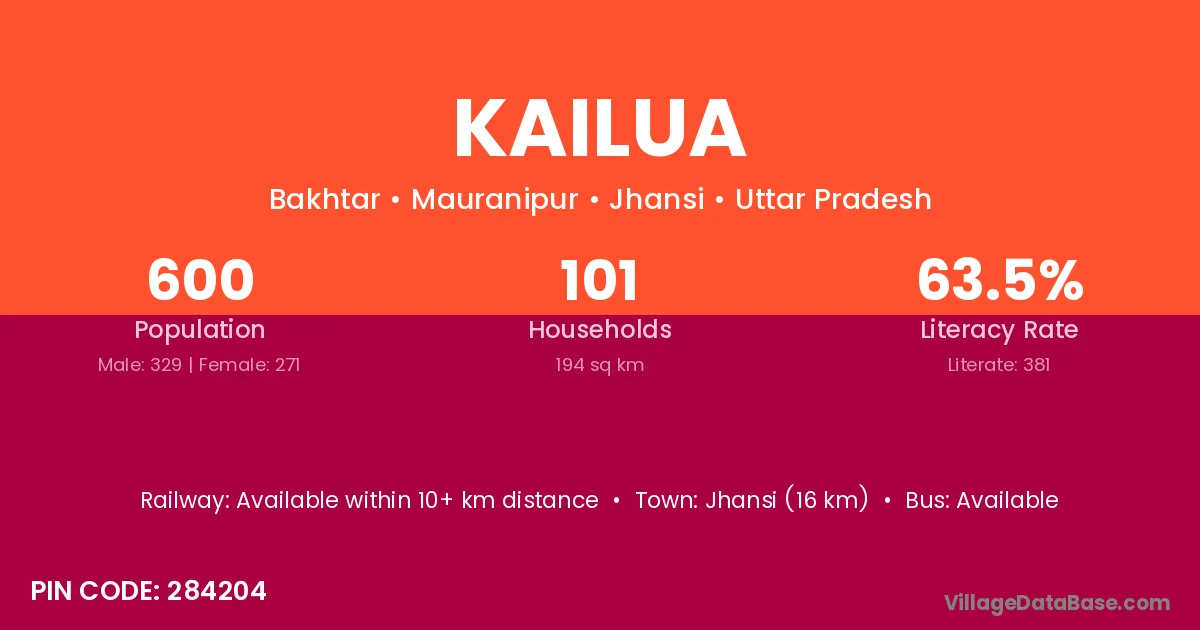 Jhansi (16 km) is the nearest town to Kailua village for major economic activities and is located approximately 16 km away.