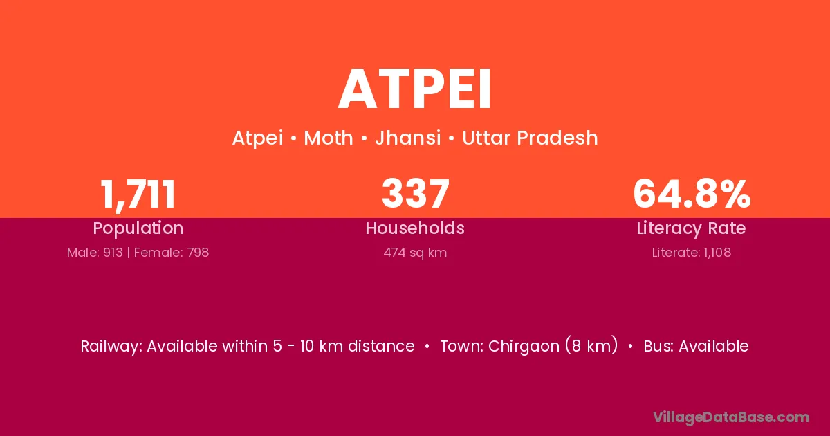 Atpei village has a total population of 1,711 people, of which 913 are males and 798 are females.