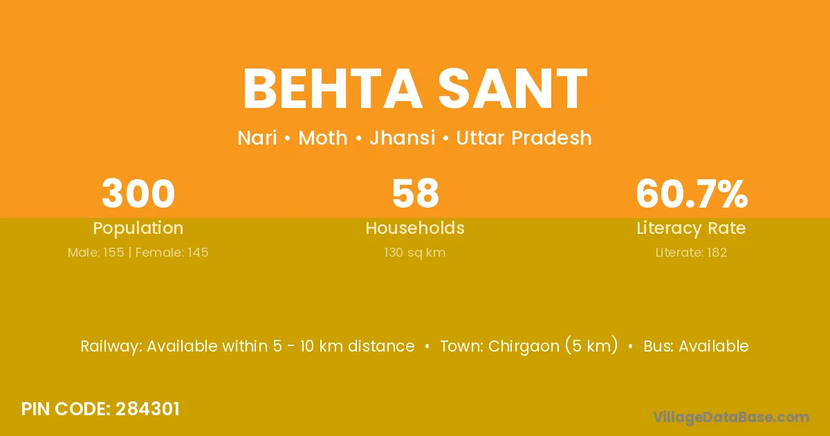 Chirgaon (5 km) is the nearest town to Behta Sant village for major economic activities and is located approximately 5 km away.