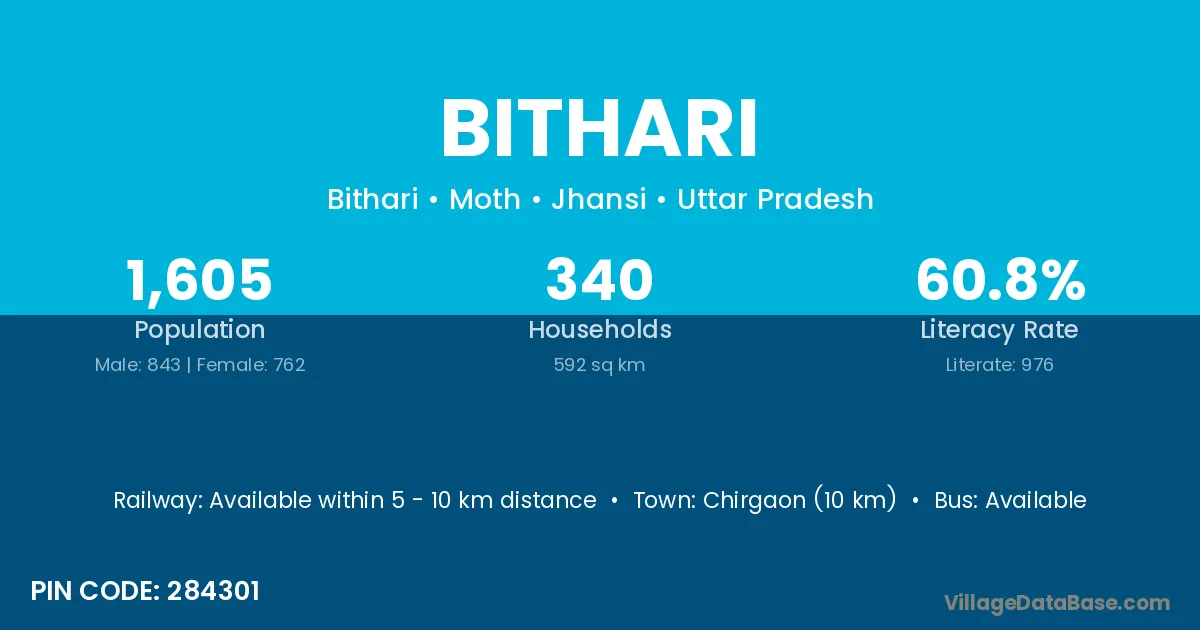 Chirgaon (10 km) is the nearest town to Bithari village for major economic activities and is located approximately 10 km away.