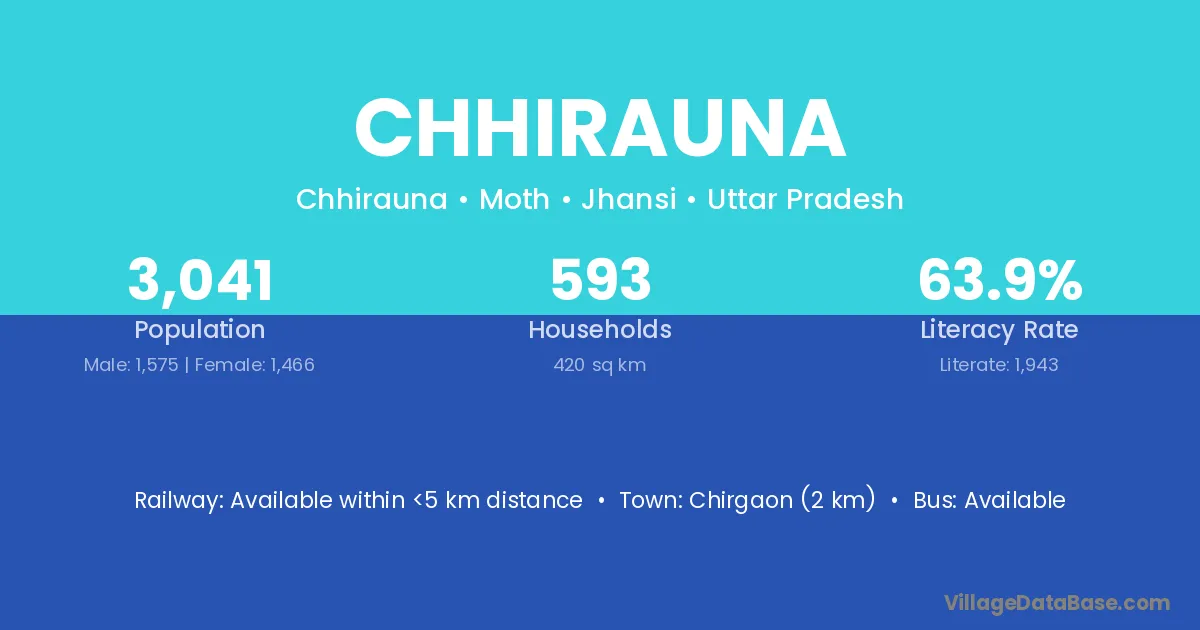 Chirgaon (2 km) is the nearest town to Chhirauna village for major economic activities and is located approximately 2 km away.