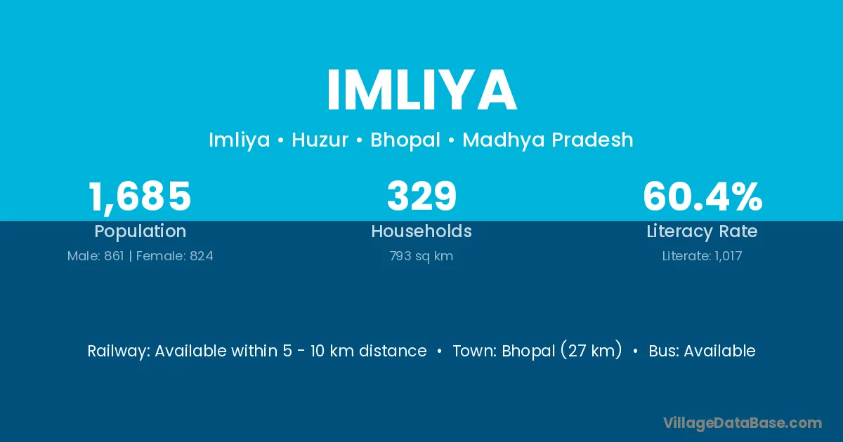 Moth (10 km) is the nearest town to Imliya village for major economic activities and is located approximately 10 km away.