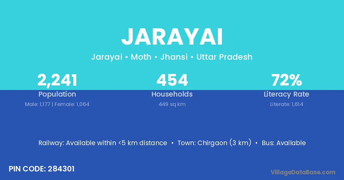 Chirgaon (3 km) is the nearest town to Jarayai village for major economic activities and is located approximately 3 km away.