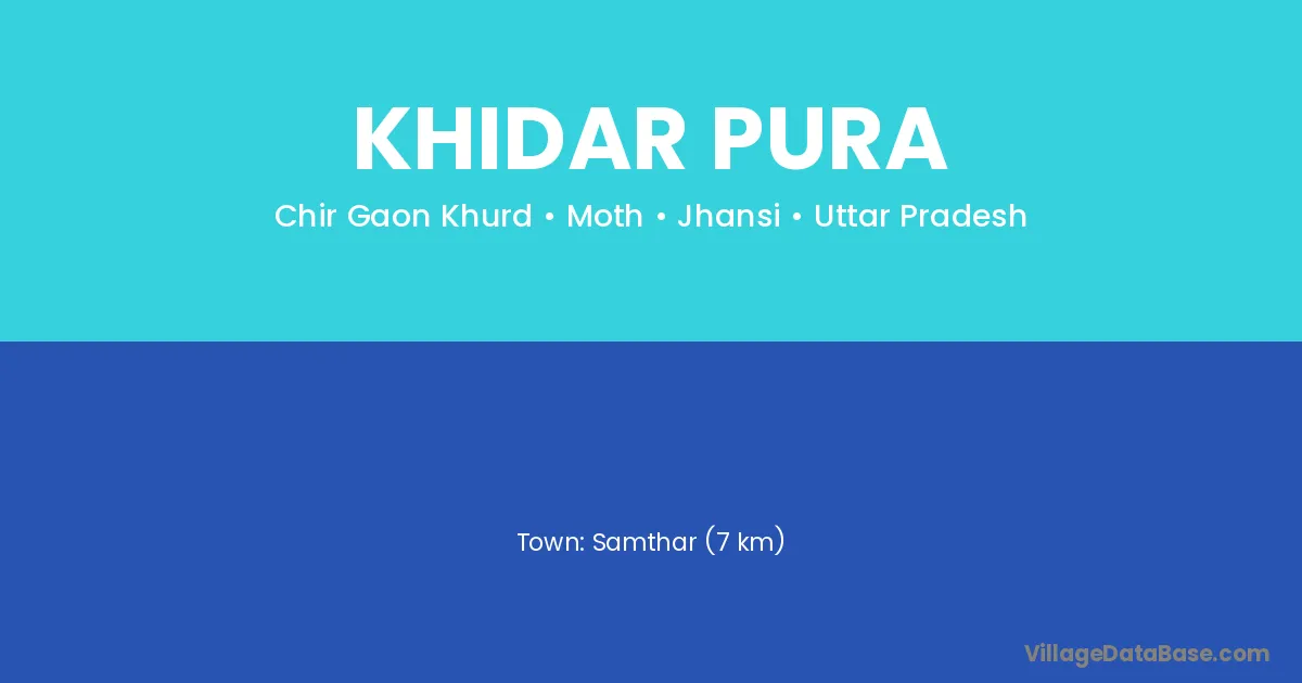 Samthar (7 km) is the nearest town to Khidar Pura village for major economic activities and is located approximately 7 km away.