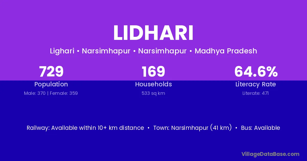 Moth (13 km) is the nearest town to Lidhari village for major economic activities and is located approximately 13 km away.