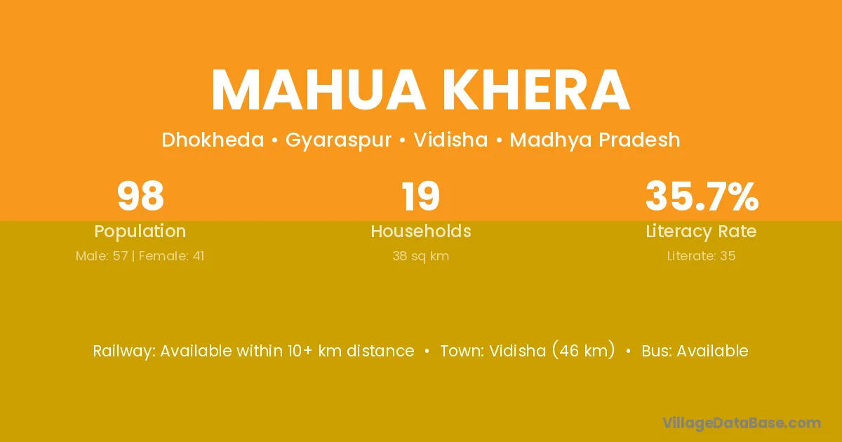 Jhansi (70 km) is the nearest town to Mahua Khera village for major economic activities and is located approximately 70 km away.