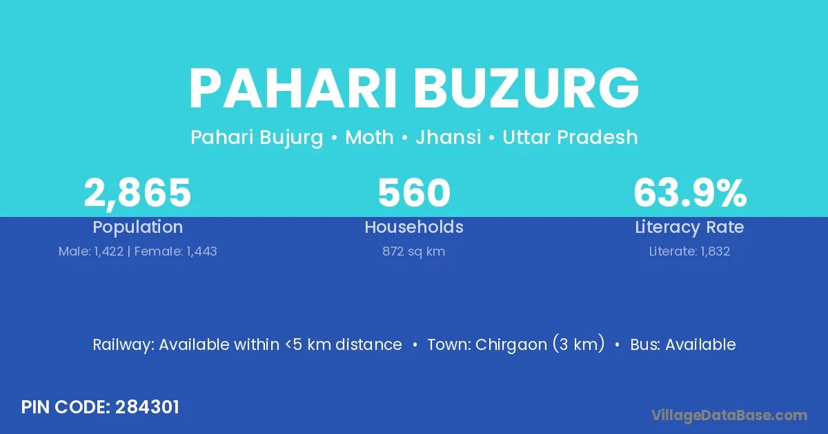 Chirgaon (3 km) is the nearest town to Pahari Buzurg village for major economic activities and is located approximately 3 km away.