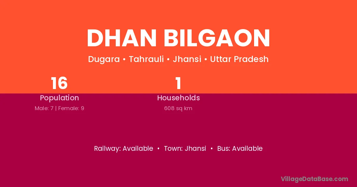 Jhansi is the nearest town to Dhan Bilgaon village for major economic activities