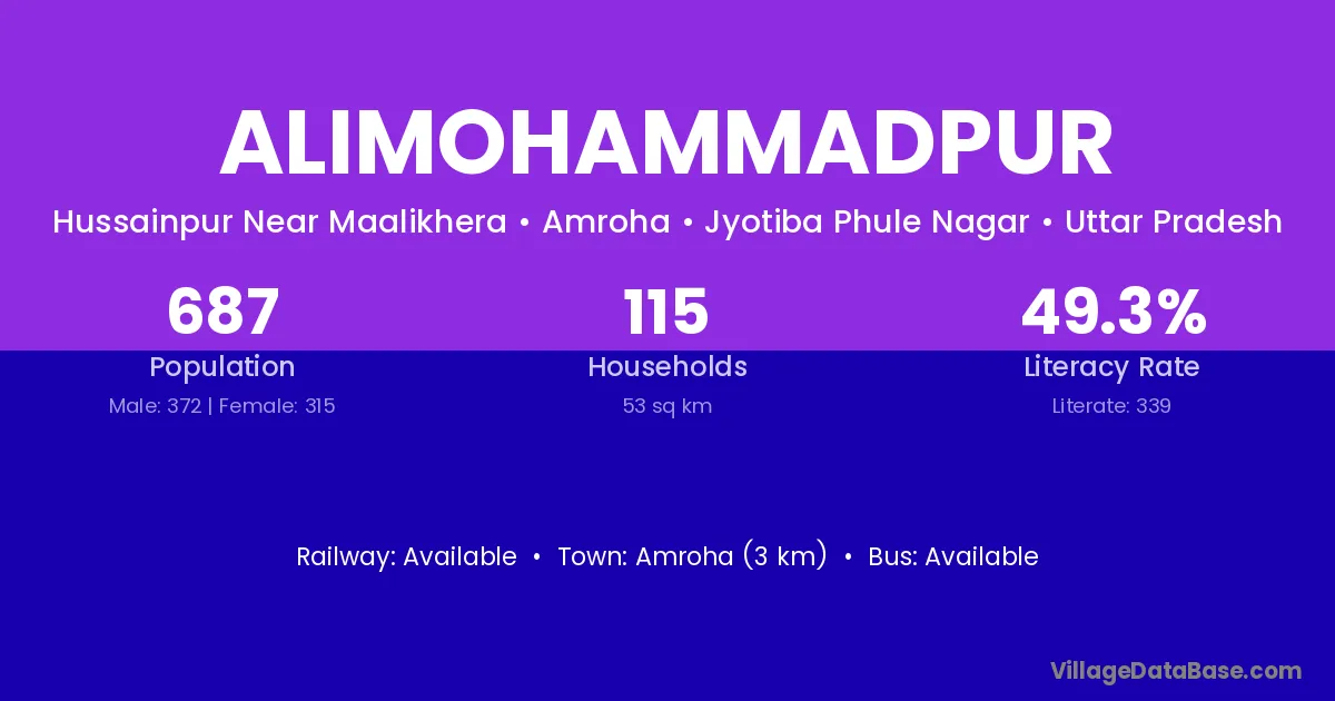 Amroha (3 km) is the nearest town to Alimohammadpur village for major economic activities and is located approximately 3 km away.