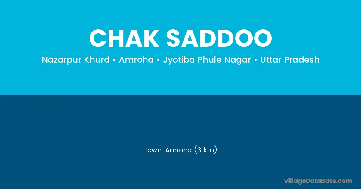 Amroha (3 km) is the nearest town to Chak Saddoo village for major economic activities and is located approximately 3 km away.