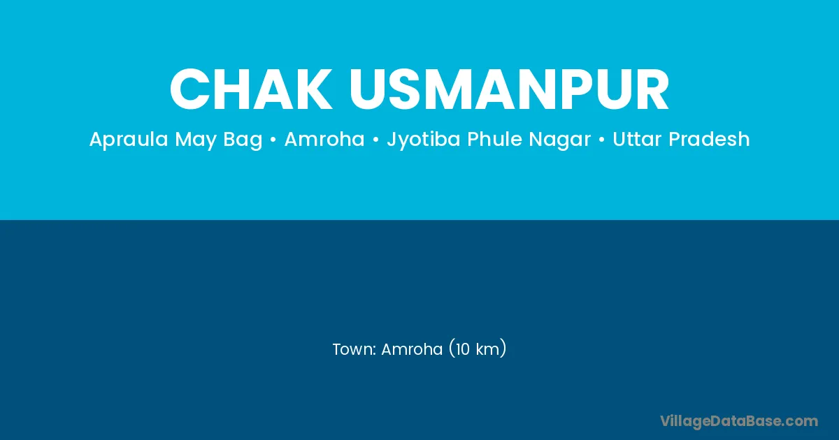 Amroha (10 km) is the nearest town to Chak Usmanpur village for major economic activities and is located approximately 10 km away.