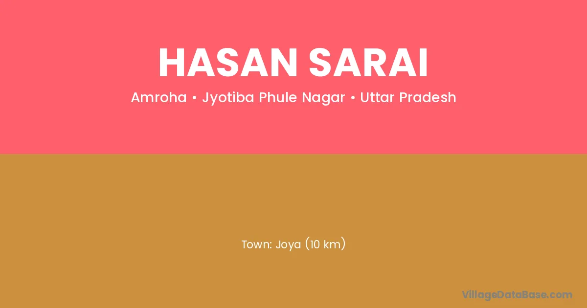 Joya (10 km) is the nearest town to Hasan Sarai village for major economic activities and is located approximately 10 km away.